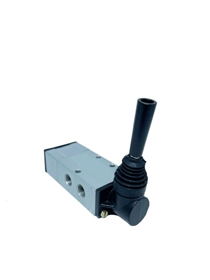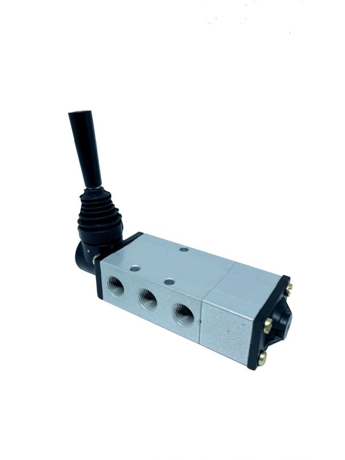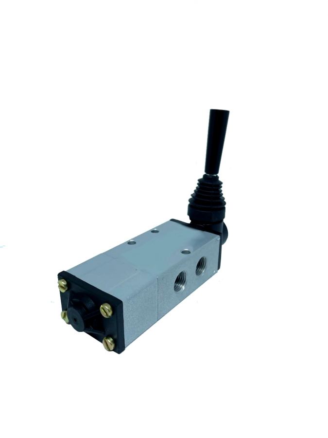 A válvula alavanca autocentrante é um componente pneumático utilizado em sistemas de ar comprimido, onde um cilindro pneumático dupla ação é acionado. Quando a alavanca é acionada até a posição final da válvula, o cilindro irá recuar ou avançar e permanecer em sua posição devido a ação da trava da válvula.