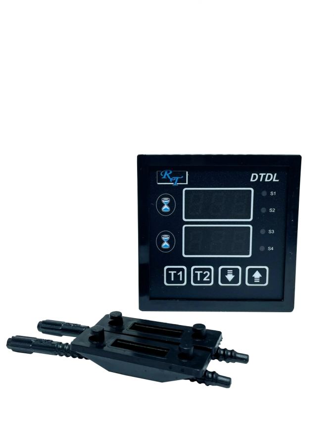 Esse equipamento é um duplo temporizador digital, capaz de controlar uma prensa do tipo sorveteira com vácuo. Dois tempos independentes na escala de décimos de segundos devem ser acionados por entradas de pulso para iniciar a prensagem.