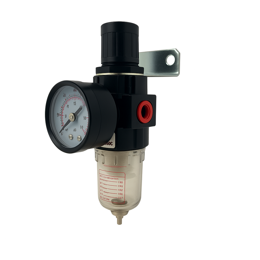 O Filtro Regulador Mini 1/4” é o par perfeito pra sistemas pneumáticos que exigem precisão, leveza e confiabilidade — mesmo em espaços reduzidos. Ideal para oficinas, automação, pintura ou bancadas industriais, esse pequeno notável une filtragem de qualidade com regulagem de pressão confiável, tudo num só corpo compacto e fácil de instalar.