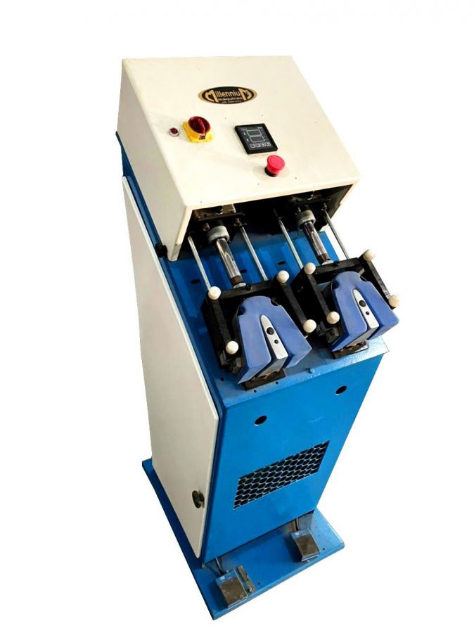 Desenvolvida para a pré-conformação do traseiro do sapato, fazendo assim uma colagem perfeita do contraforte e uma boa abertura de costura. Possui pedal pneumático para acionamento, tem aparelho digital.