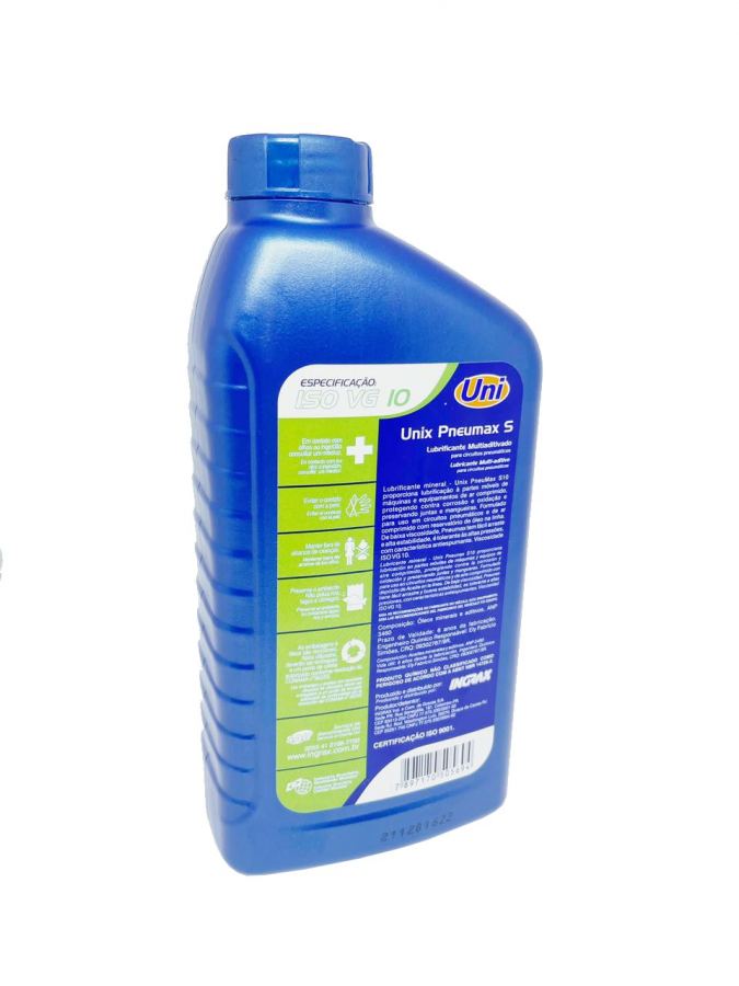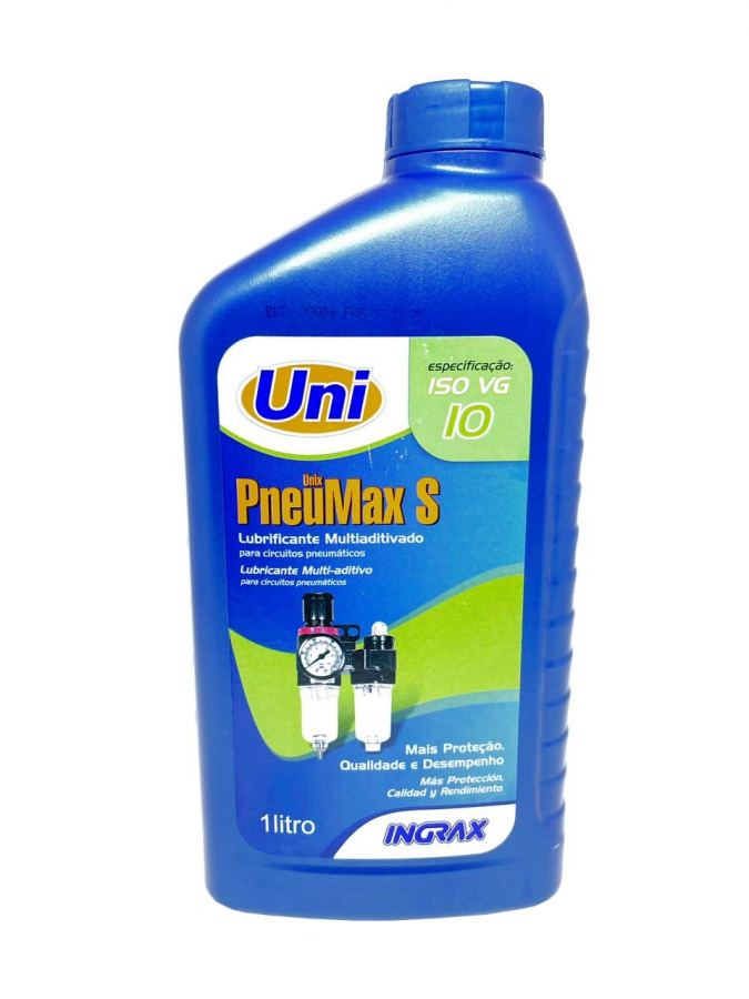 Lubrificante mineral Unix PneuMAX S10 proporciona lubrificação para maquinas e equipamentos de ar comprimido, protegendo contra corrosão e oxidação, preservando juntas e mangueiras. Formulado para uso em circuitos pneumáticos e de ar comprimido com reservatório de óleo na linha. É recomendado para todos os tipos de acionamento pneumático.